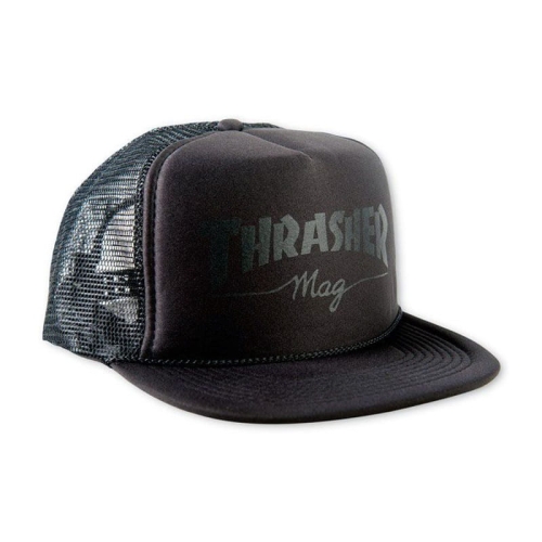 THRASHER MAG LOGO PRINTED MESH CAP BLACK